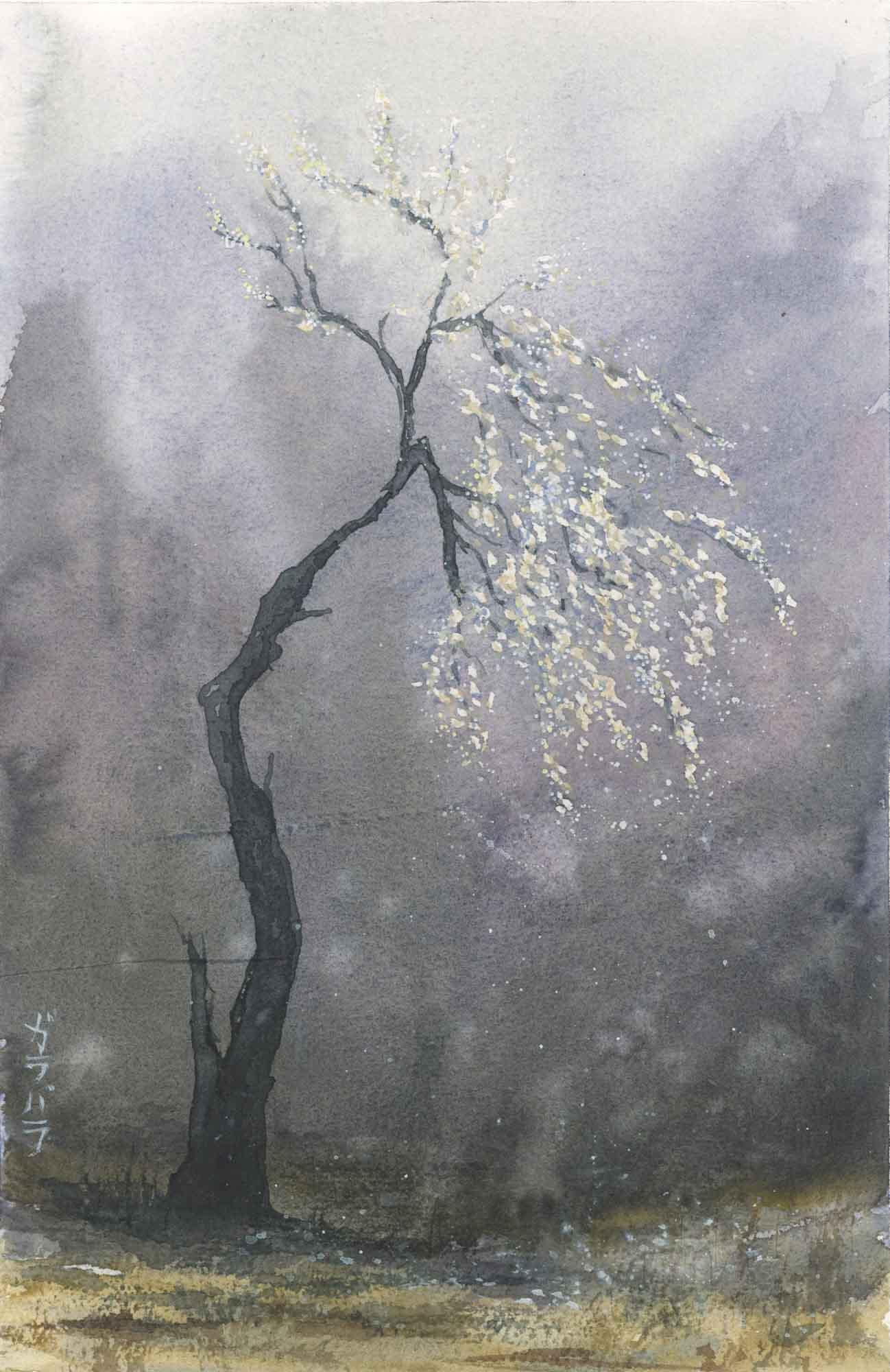Drzewo - kwitnienie - akwarela 30x21cm - Malarstwo spokoju.