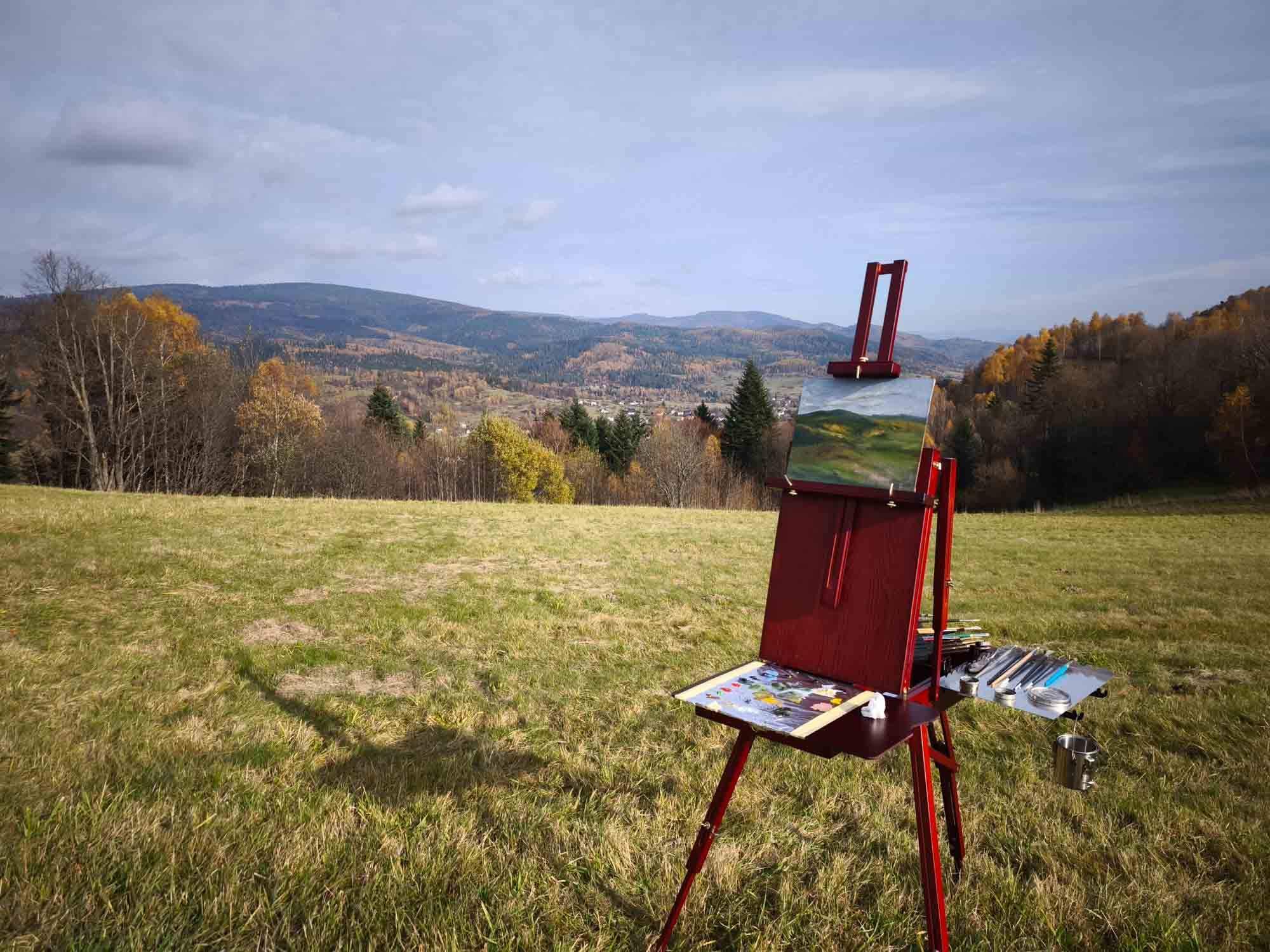 Obraz plenerowy - Barania Góra widziana z Lalik Jest to pierwszy plenerowy obraz artysty jaki powstał w Beskidzie.