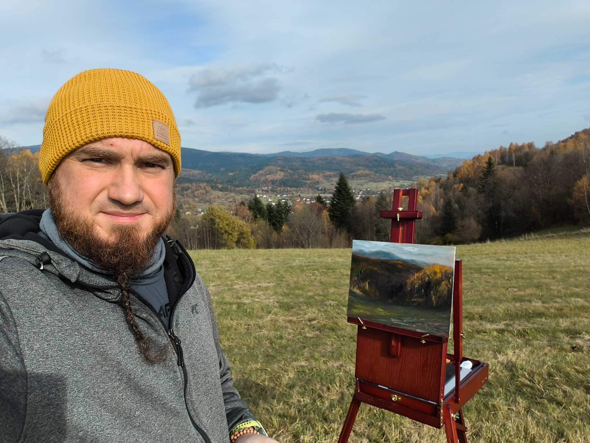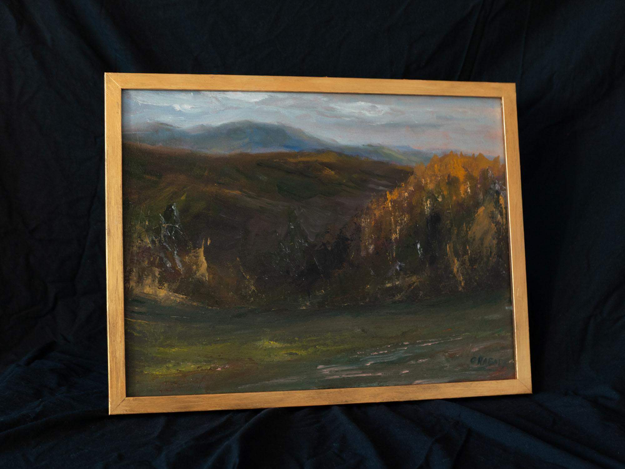 Obraz plenerowy - pasmo Baraniej Góry widziany z Lalik
