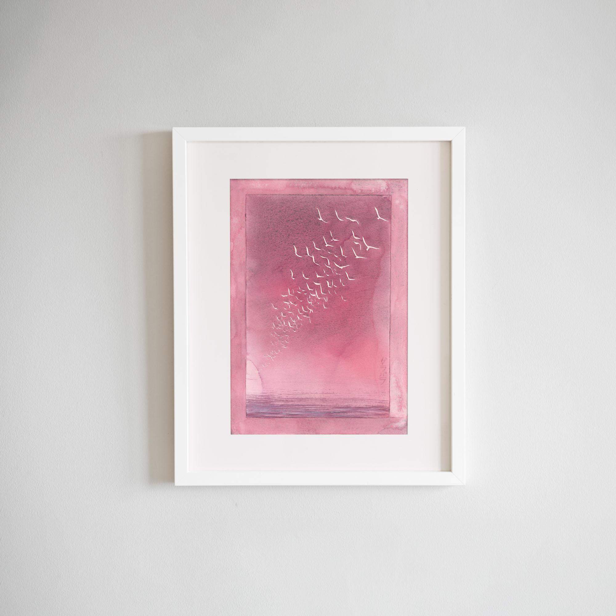 4. Ptaki akwarela z kryształkami ametystu - akwarela 30x21 cm