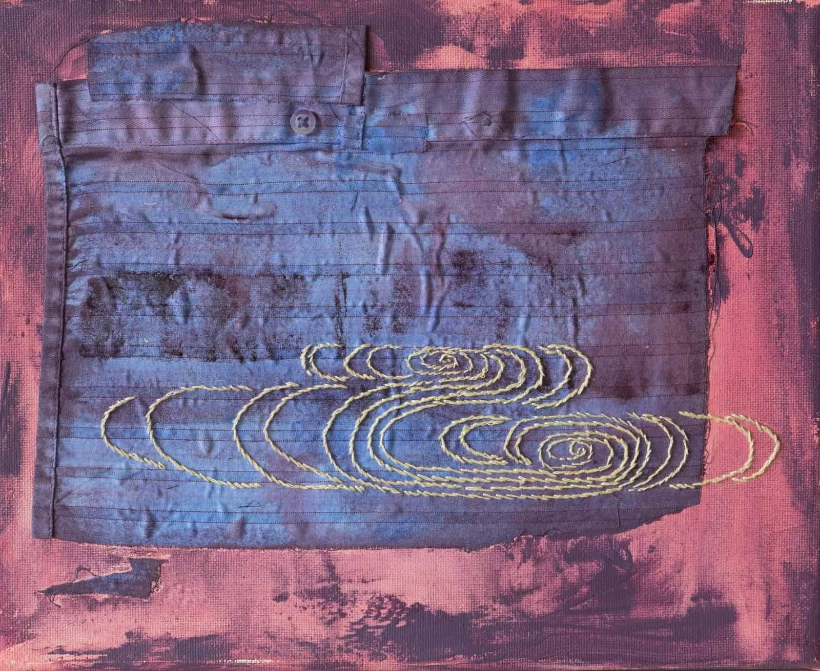 Co po nas zostaje? - akryl, tkanina i haft na płótnie - 30x24 cm.