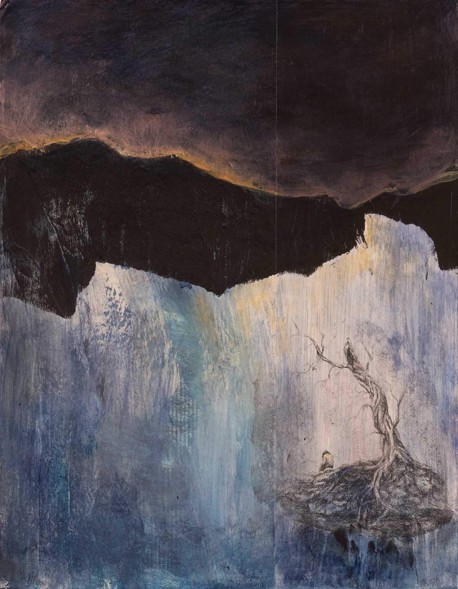 Technika: akryl i transfer na tekturze Wymiary: 36x28cm