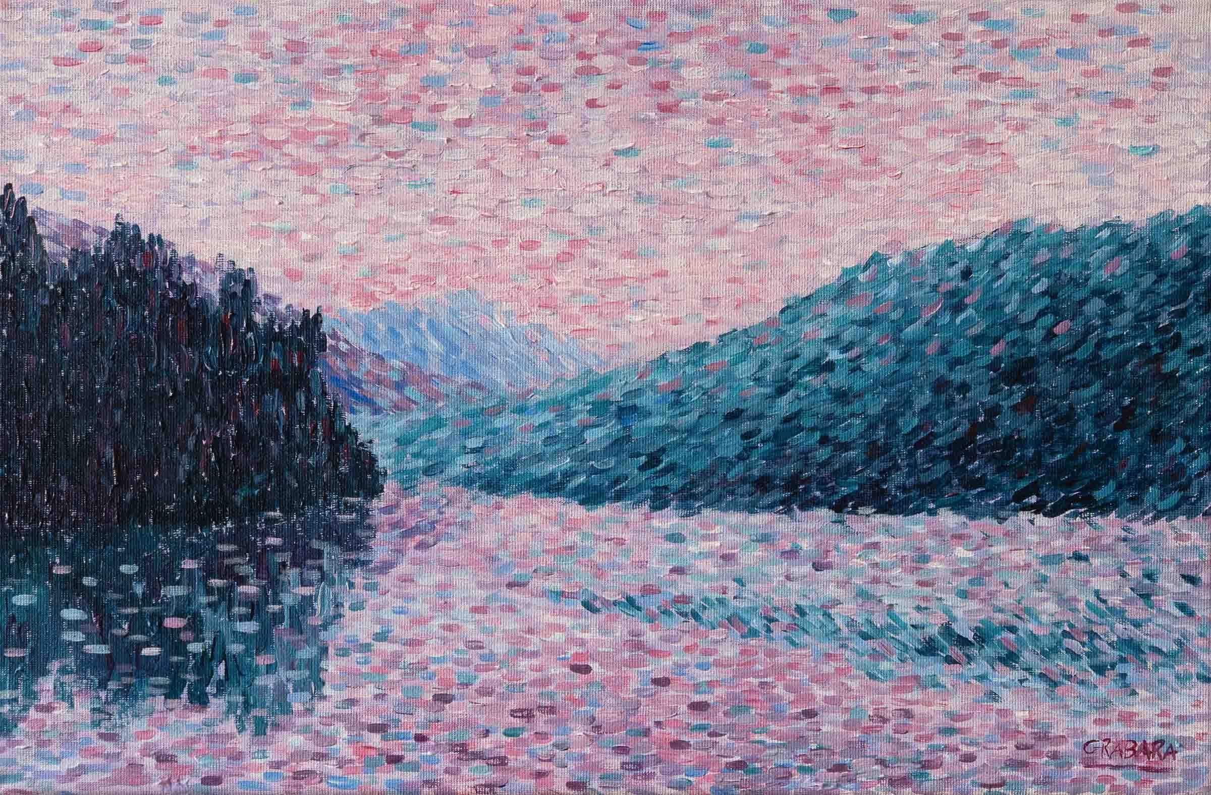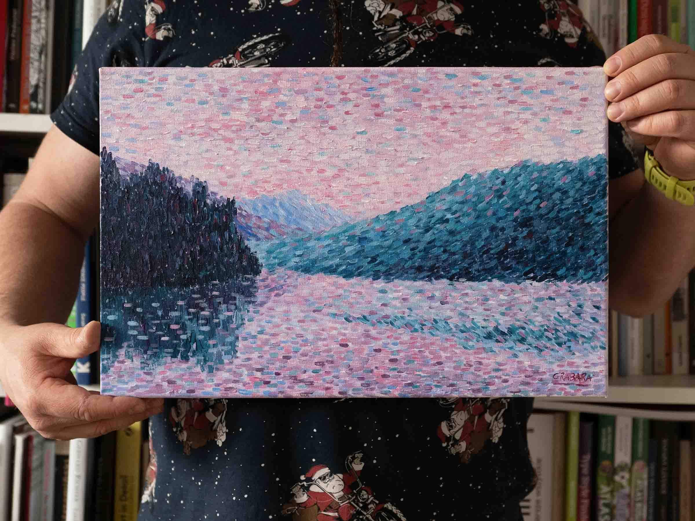 Pejzaż pointylistyczny op.5 Wisła Czarne - akryl na płótnie - 41x27cm Obraz wykonany został farbami akrylowymi na płótnie i nie wymaga dodatkowej oprawy.