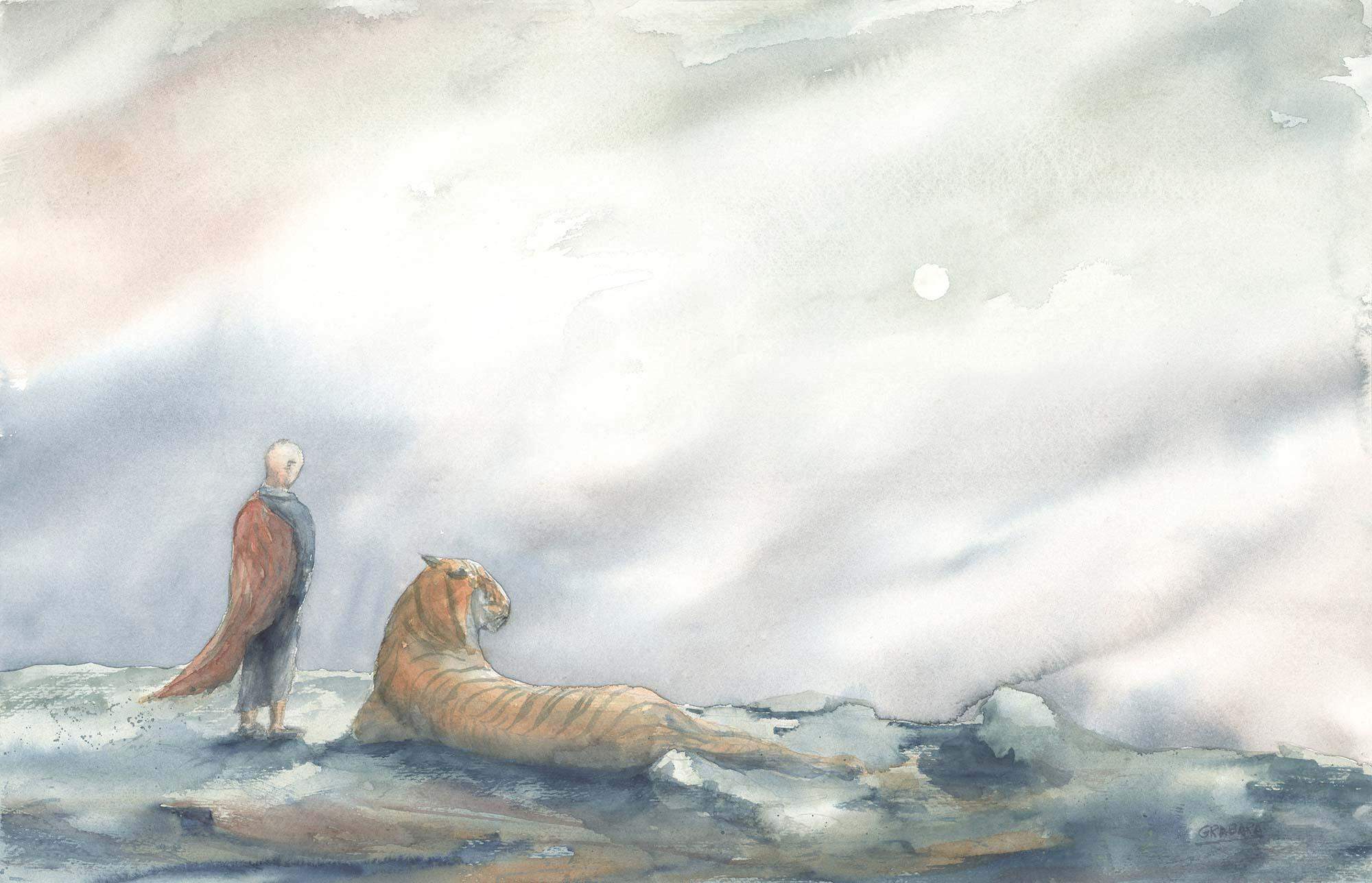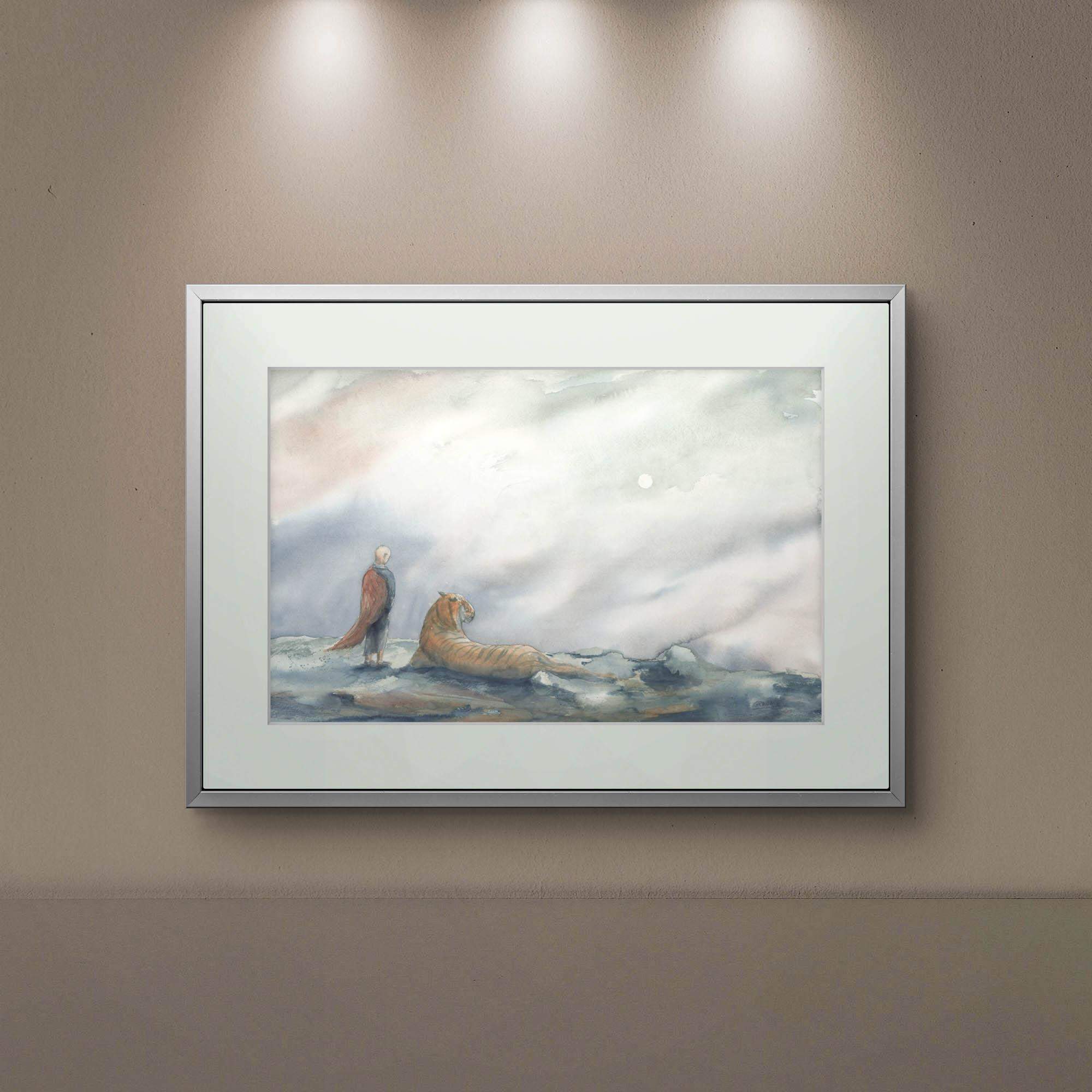 Obraz to akwarela, malowana farbami wodnymi na podobraziu papierowym. Nie jest oprawiony.