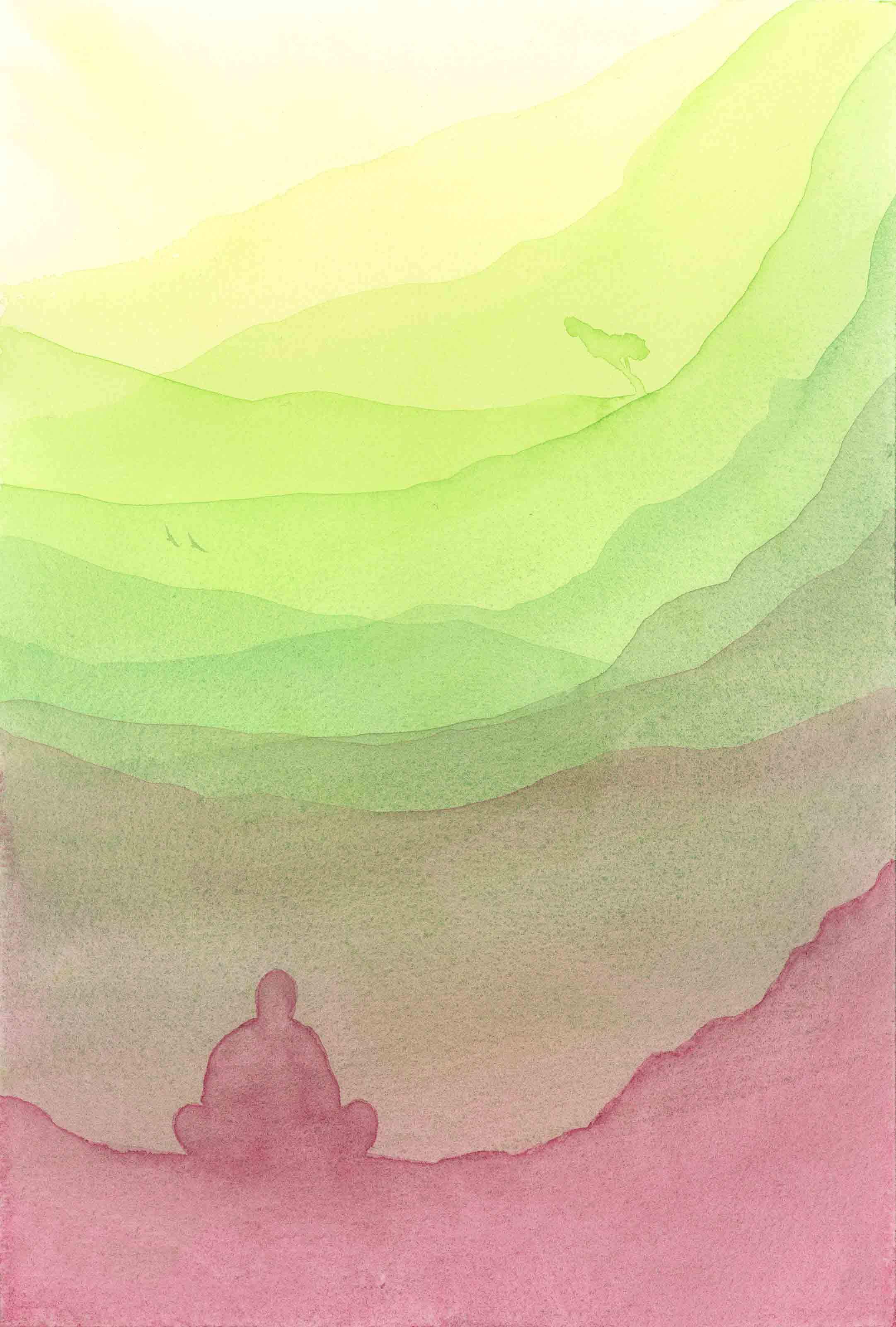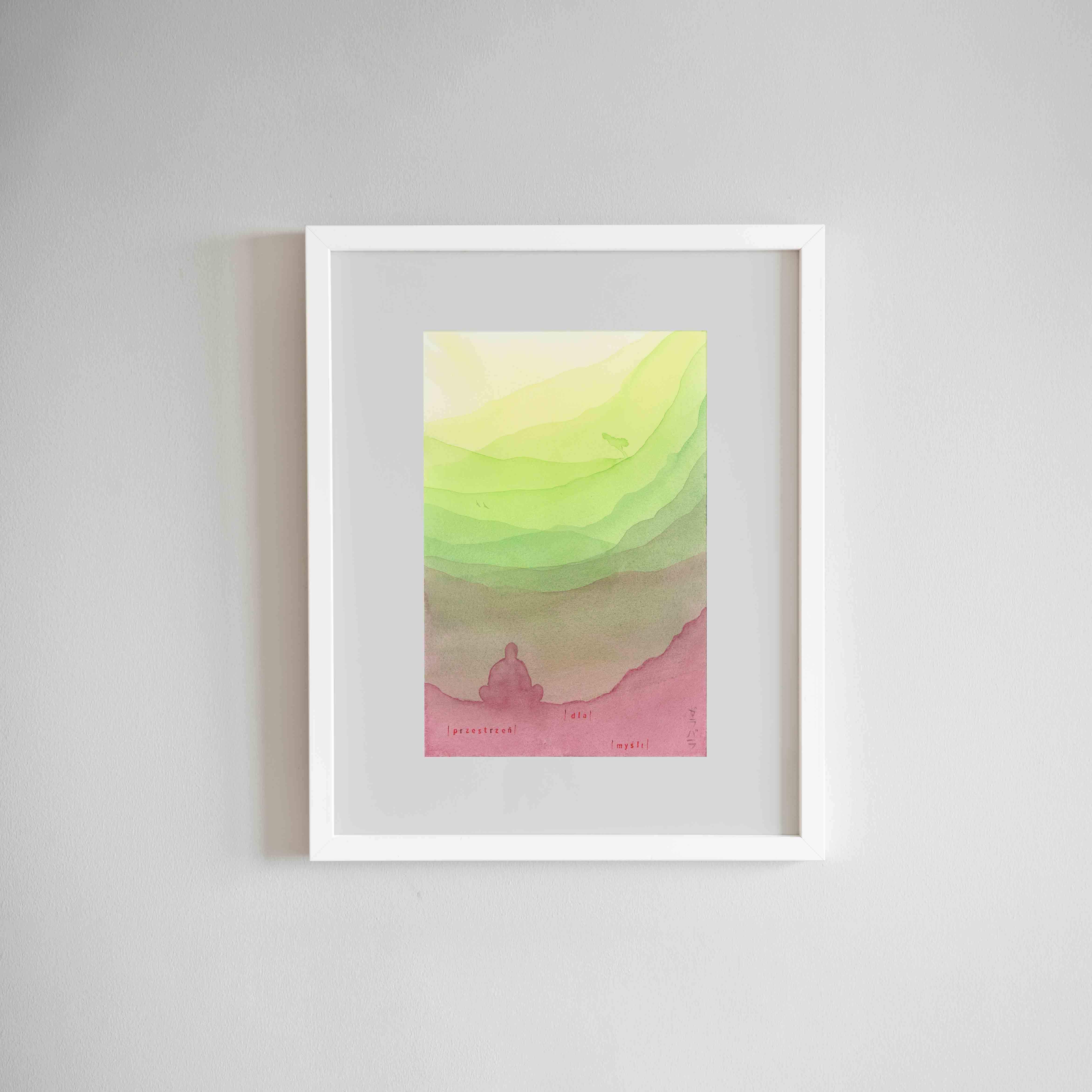 Przestrzeń dla myśli - akwarela 30x21cm - Malarstwo spokoju. Obraz wykonany został farbami akwarelowymi na papierze przeznaczonym do tej techniki. Wymaga dodatkowej oprawy - zdjęcie nr 2 jest poglądowe, jest to propozycja oprawy.