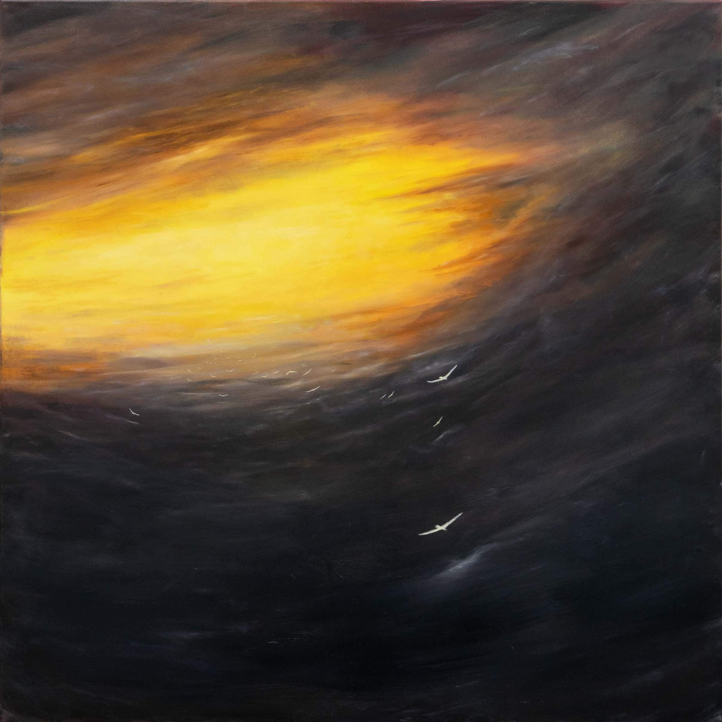 Ptaki - olej na płótnie - 100x100cm - wystawiany - Bądź dla siebie światłem Obraz wykonany został farbami olejnymi na płótnie. Wystawiany był na wystawach: "Spokój jest tutaj" w Centrum Kultury Śląskiej "To jest Twoje życie i nikt za Ciebie go nie przeżyje" w Muzeum Regionalnym w Kościanie
