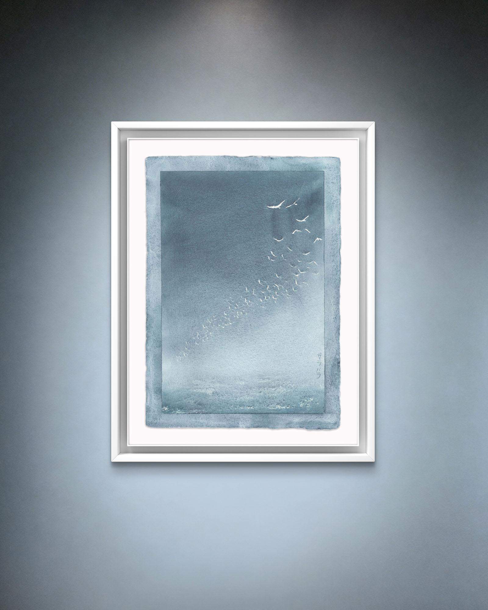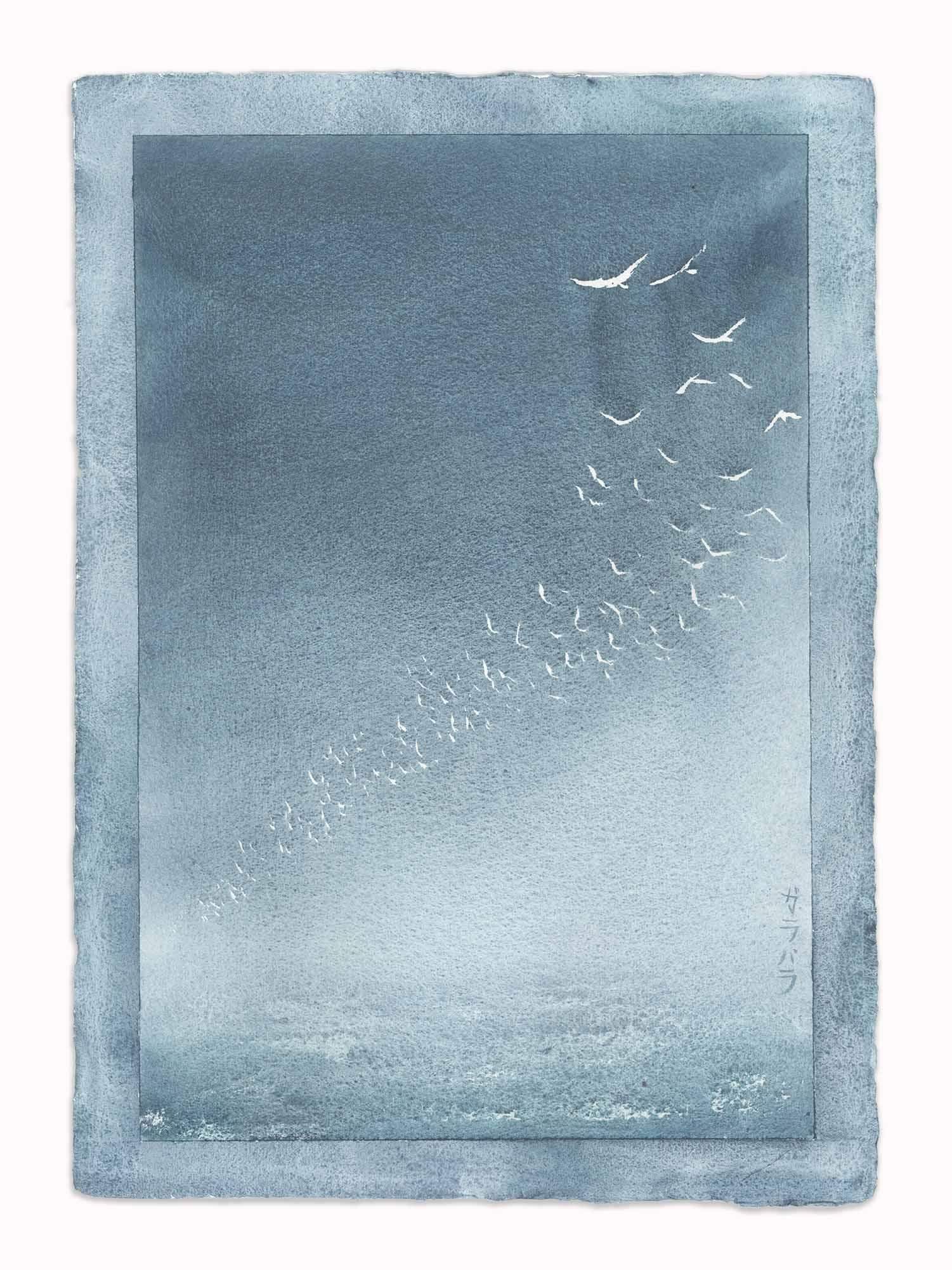 Ptaki - akwarela z kryształkami kyanitu - 42x30cm