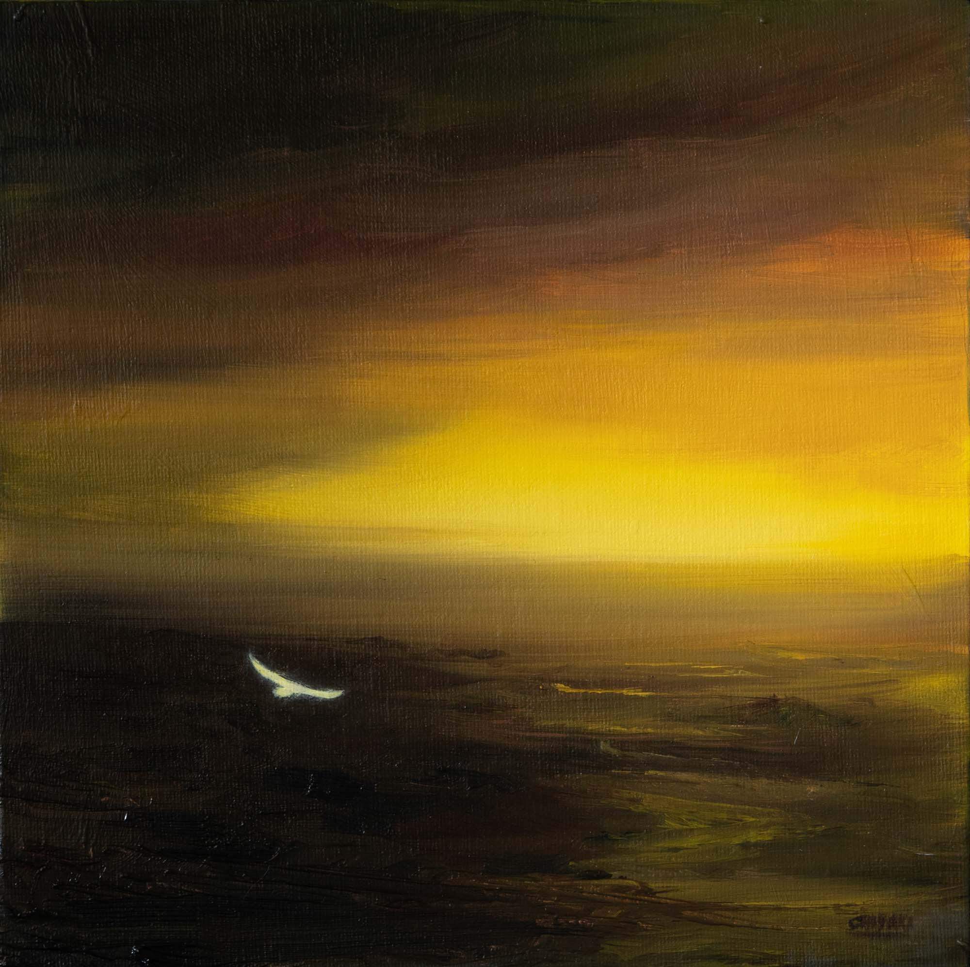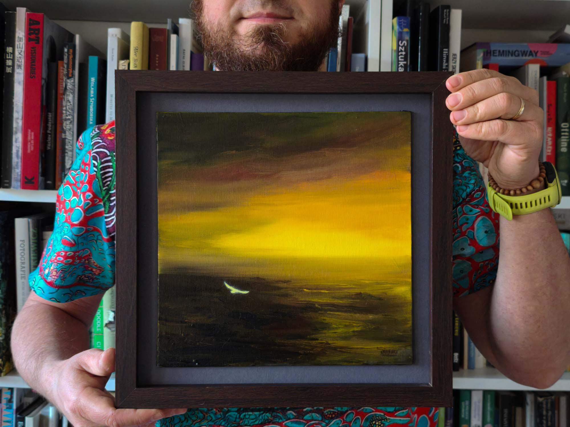 Świetlisty ptak - olej na płótnie - 25x25cm - oprawiony - Bądź dla siebie światłem Obraz wykonany został farbami olejnymi na płótnie.