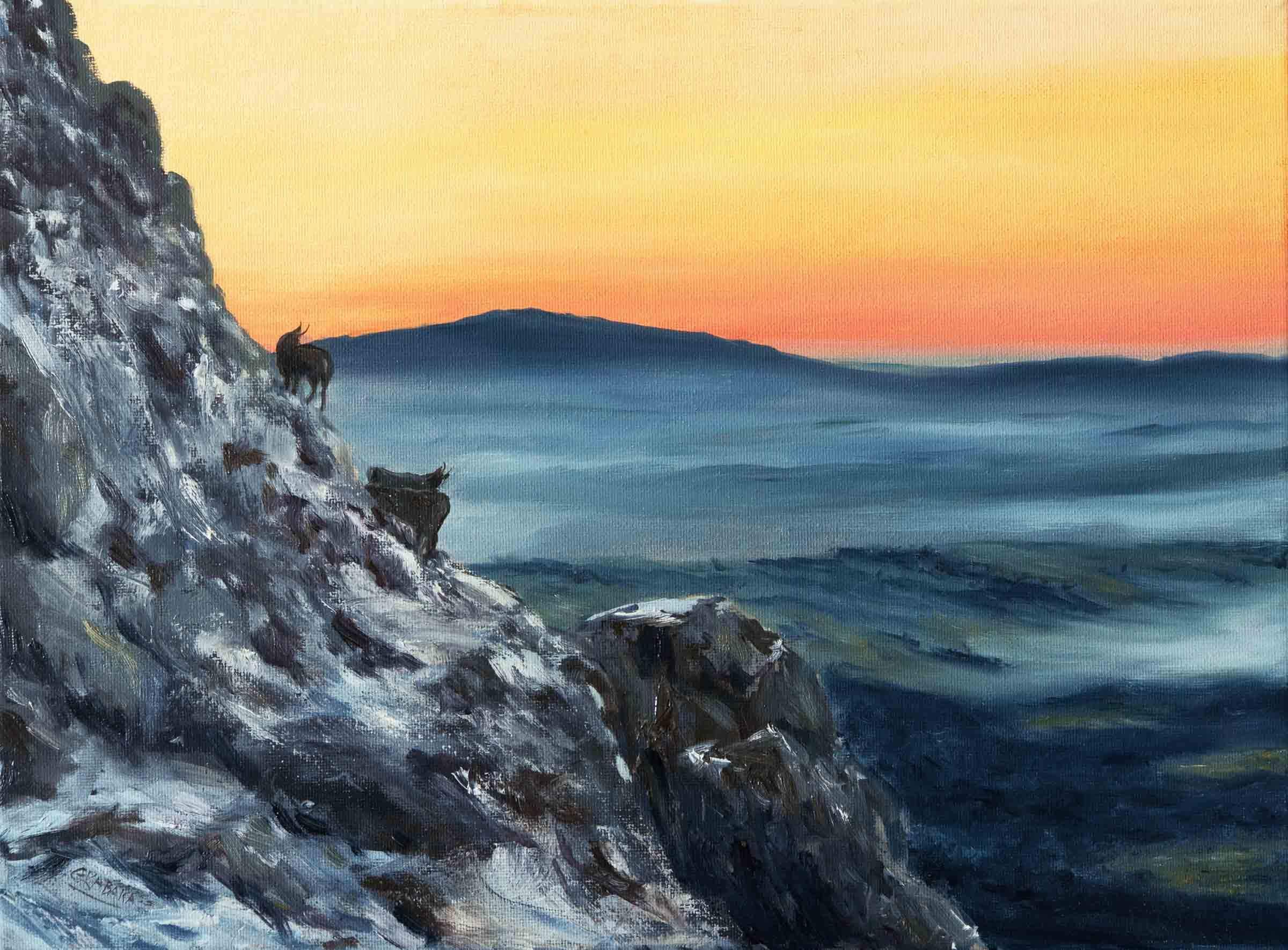 Tak to wyglądało. Gdy schodziłem z bratem z Czerwonych Wierchów w kierunku Doliny Kościeliskiej było już po zachodzie słońca. Na przełęczy, na górującej nad nią skale spotkaliśmy kozice. Nic sobie nie robiły z naszej obecności. Sylwetka Babiej Góry zaznaczała się w tle, a po prawej, nieco obok Giewontu miał miejsce wschód księżyca.