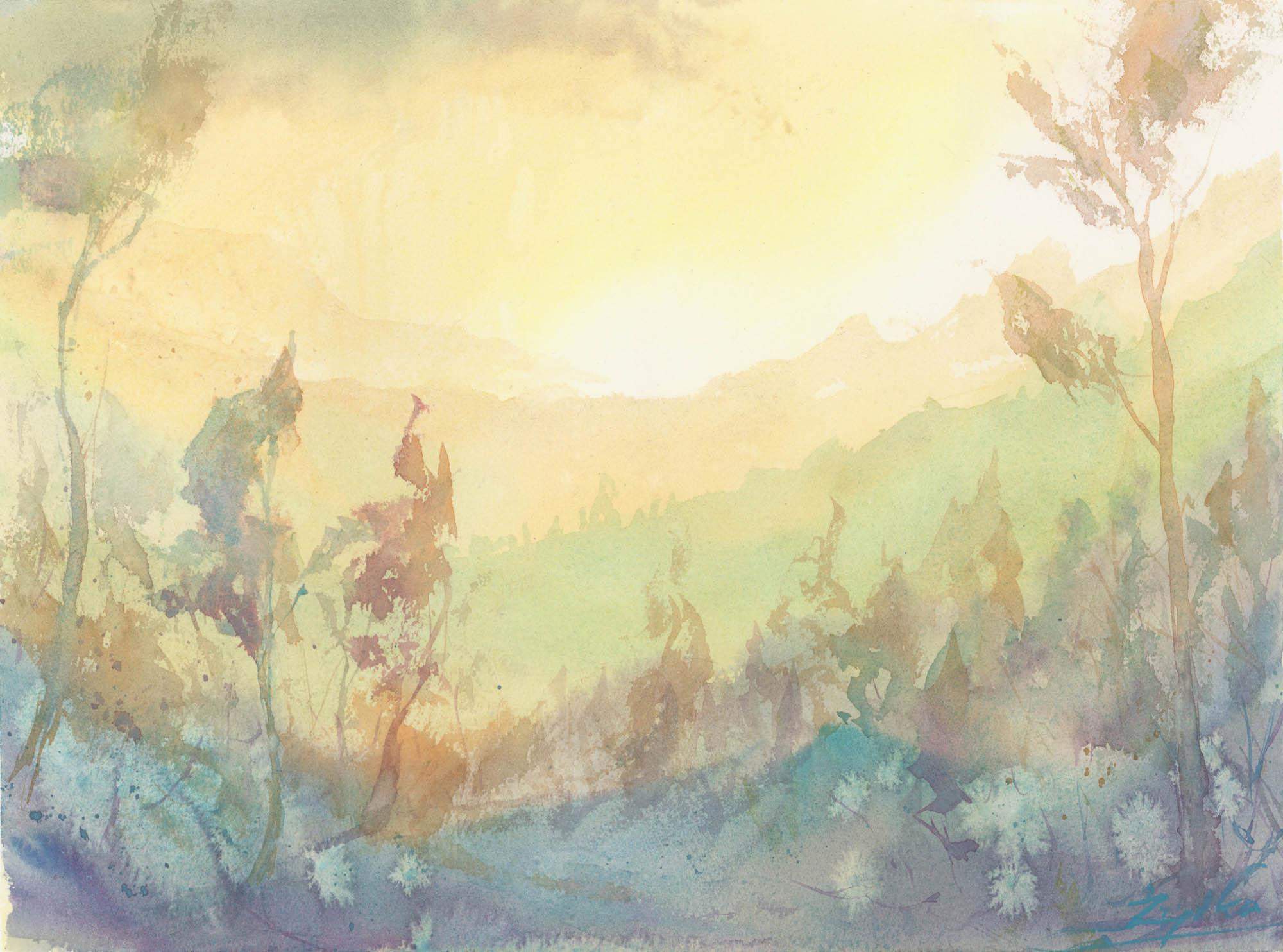 Technika: akwarela na papierze o gramaturze 300gsm Wymiary: 40x30cm - obszar zamalowany ok 36x26cm