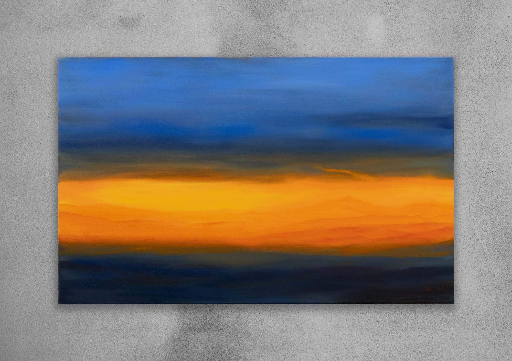 Gdy schodziłem ze szczytu Równicy w kierunku schroniska zatrzymał mnie widok szczeliny między ziemią, a chmurami. Hałdy jak góry w zachodzącym słońcu, ich zarysowane sylwetki wywarły na mnie wrażenie, które uwieczniłem na trzech obrazach w różnym formacie. Każdy nieco inny, ale energia ta sama.