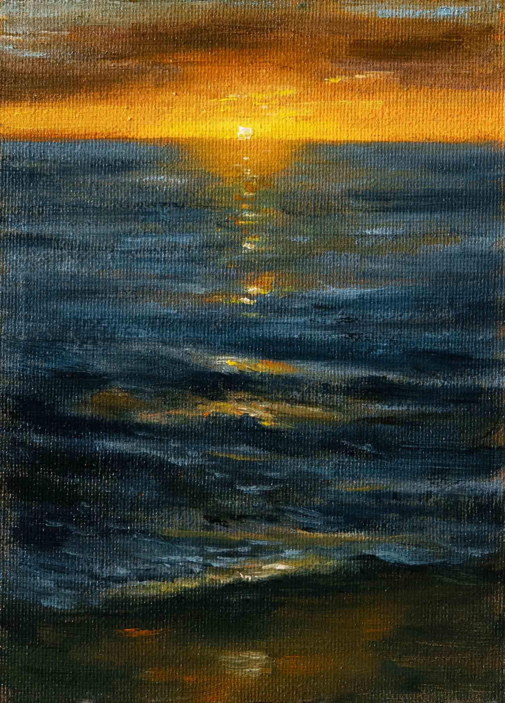Scena przedstawia impresję o wschodzie słońca z plaży w Gdyni, podczas odosobnienia medytacyjnego.